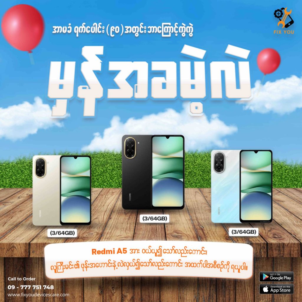2025 ခုနှစ်ရဲ့ နောက်ဆုံးပေါ် Redmi A5 ကြီးက ဖုန်းကြီးကြီး၊ ကင်မရာကြီးကြီး၊ အားကြီးကြီး နဲ့ FixYou မှာ ရောက်ရှိနေပါပြီ