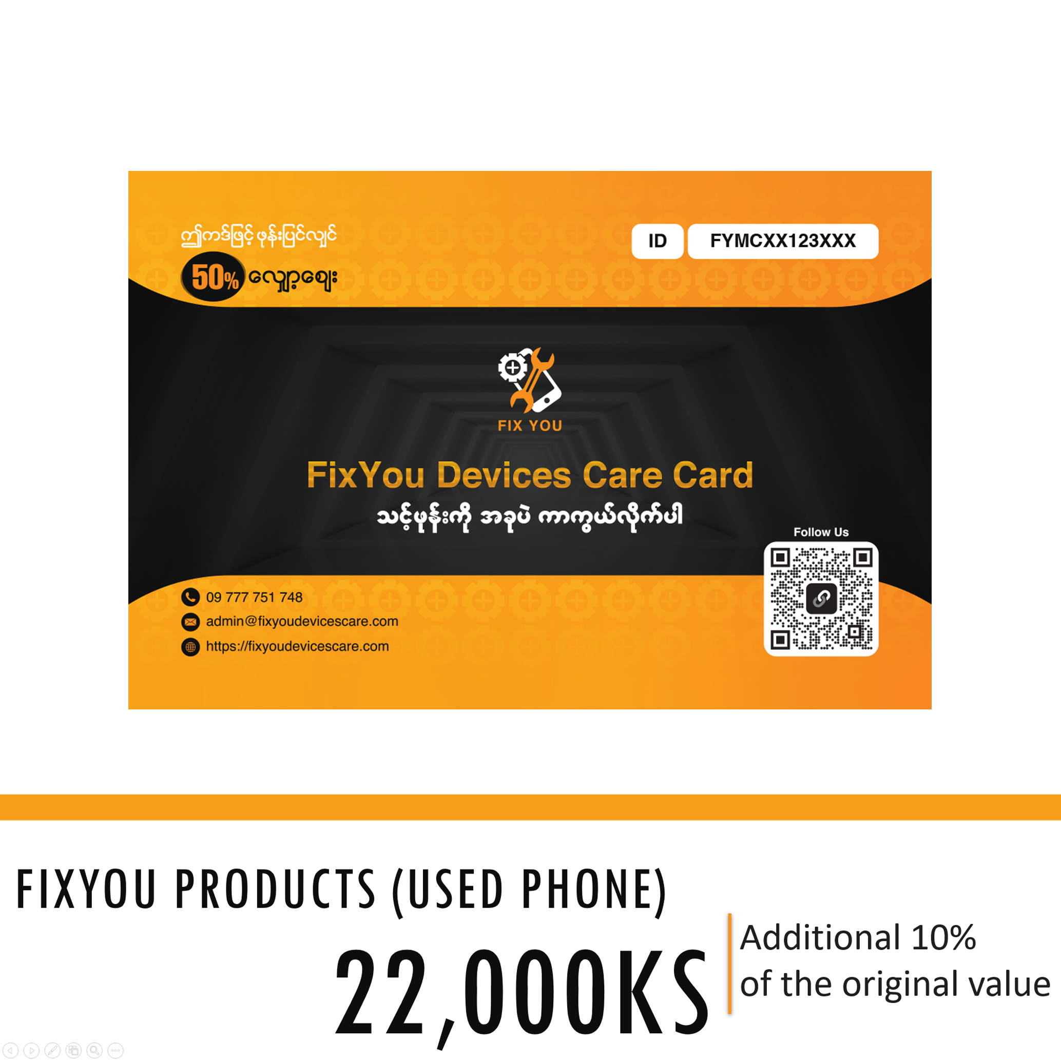ယခုကဒ်အား ဝယ်ယူရန် သင့်ဖုန်း၏ တန်ဖိုးအား FixYou အဖွဲ့နှင့် ဆက်သွယ်စစ်ဆေးပါ။ (Hotline – 09777751748)